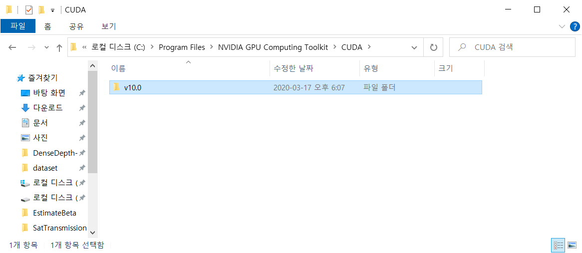 그래서 서치한 사이트에서 발견한 나와 같은 버전을 가진 사람 - 윈도우 10, CUDA v10.0를 가진 사람의 코멘트를 따라 다음과 같은 명령어를 입력해주었다.